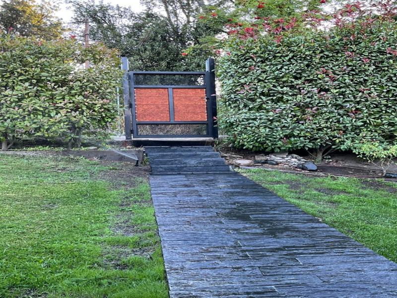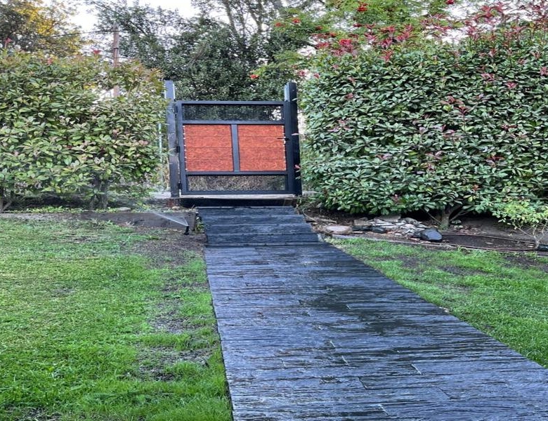El exterior acompaña con un terreno completamente aprovechado: parquizado, con riego por aspersión en toda la superficie y delimitado por cerco vivo y alambrado perimetral, lo que garantiza privacidad y seguridad. Las veredas perimetrales, de material símil quebracho, aportan estética y cero mantenimiento, al igual que las contenciones de material que estructuran el lote.